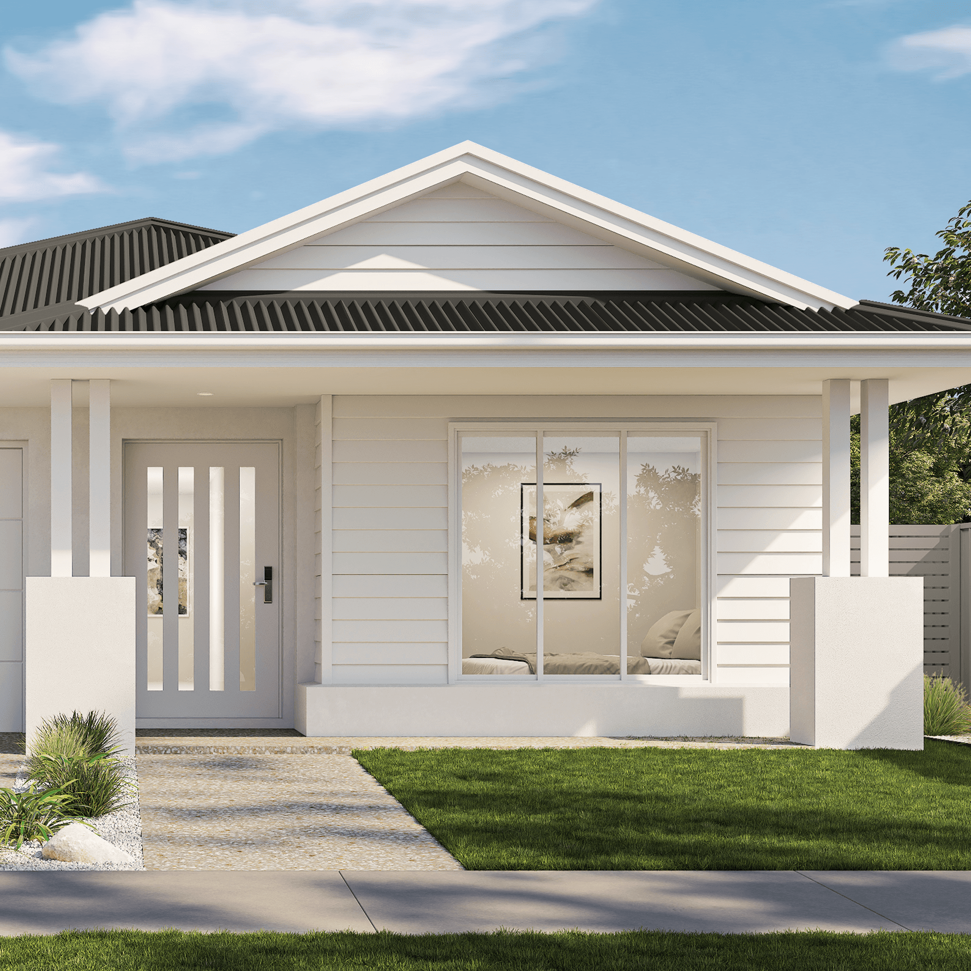 Evoking the laid-back coastal vibe that inspired it, the Yamba façade is effortless elegance from the street. A confident gabled roofline sets a classic seaside silhouette, while clean horizontal cladding adds a modern, streamlined finish.